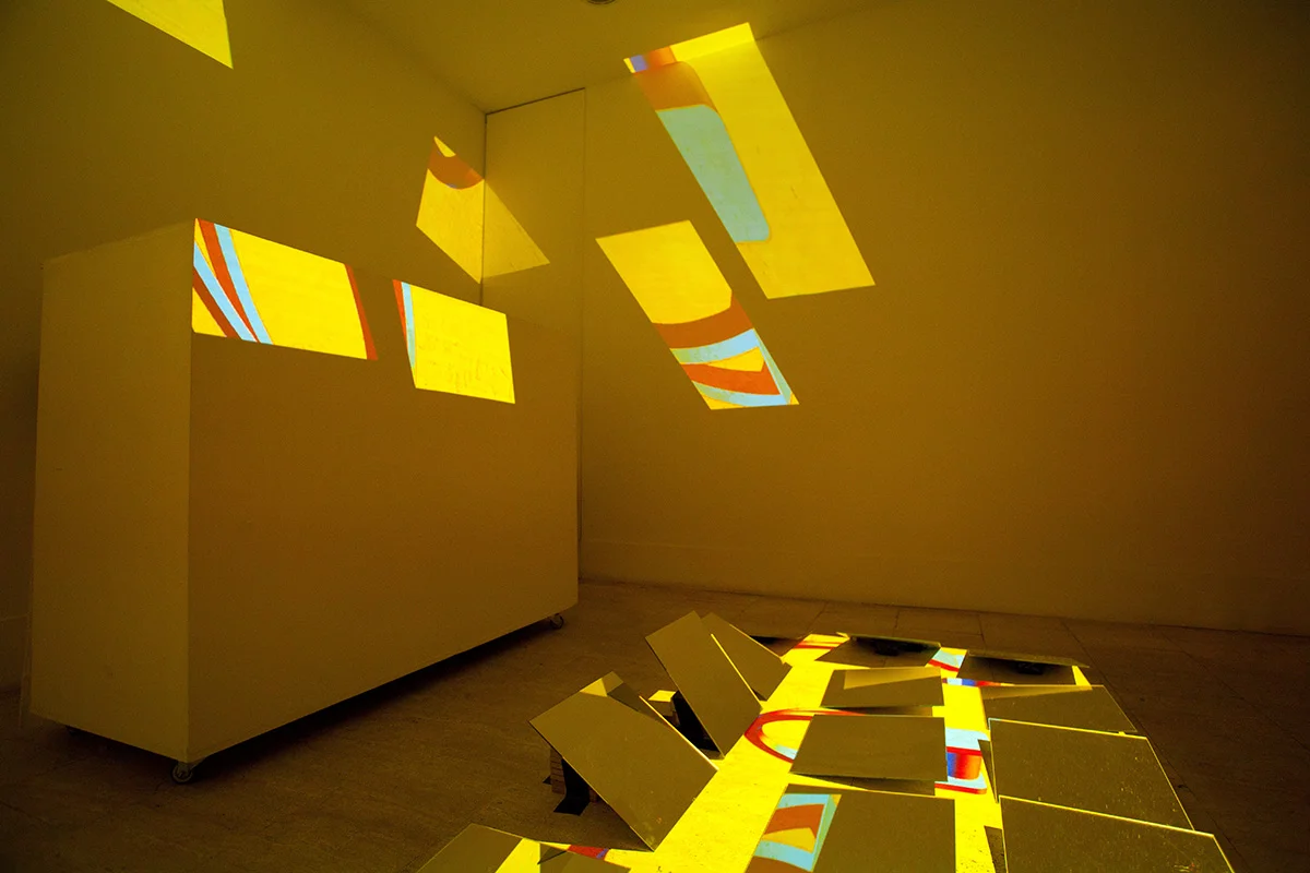 [ your + my ] boiling emotions shot out a digital language over the walls in the form of video-slivers [= moving fragmented luminous flux projected on surfaces of the space via reflecting pixels-zones] anticipating an uncontrollable future_